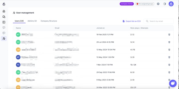 You can easily add a user to a role-play so they can participate and submit their recordings.