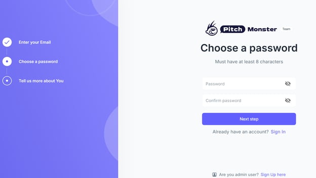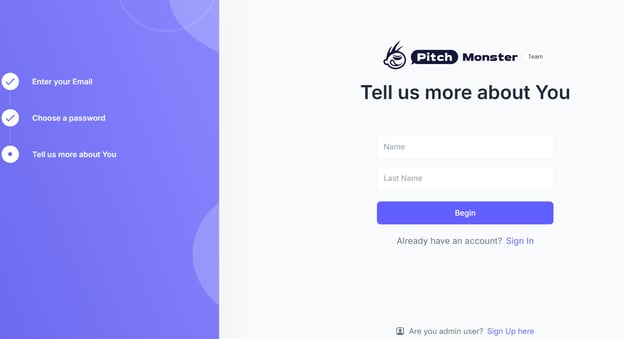 You’ll create your PitchMonster account only after you’ve been invited to complete your first role-play. This quick guide will walk you through the process — whether you’ve received an email invite or a direct join link from your team.