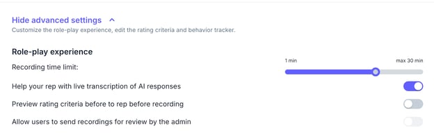 Once enabled, your role-play can last up to 30 minutes, giving you more time to practice and refine skills.