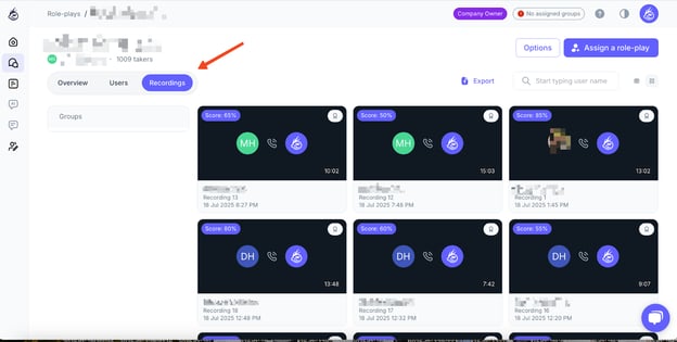 This will download a .csv file containing all recordings across every role-play in your account.